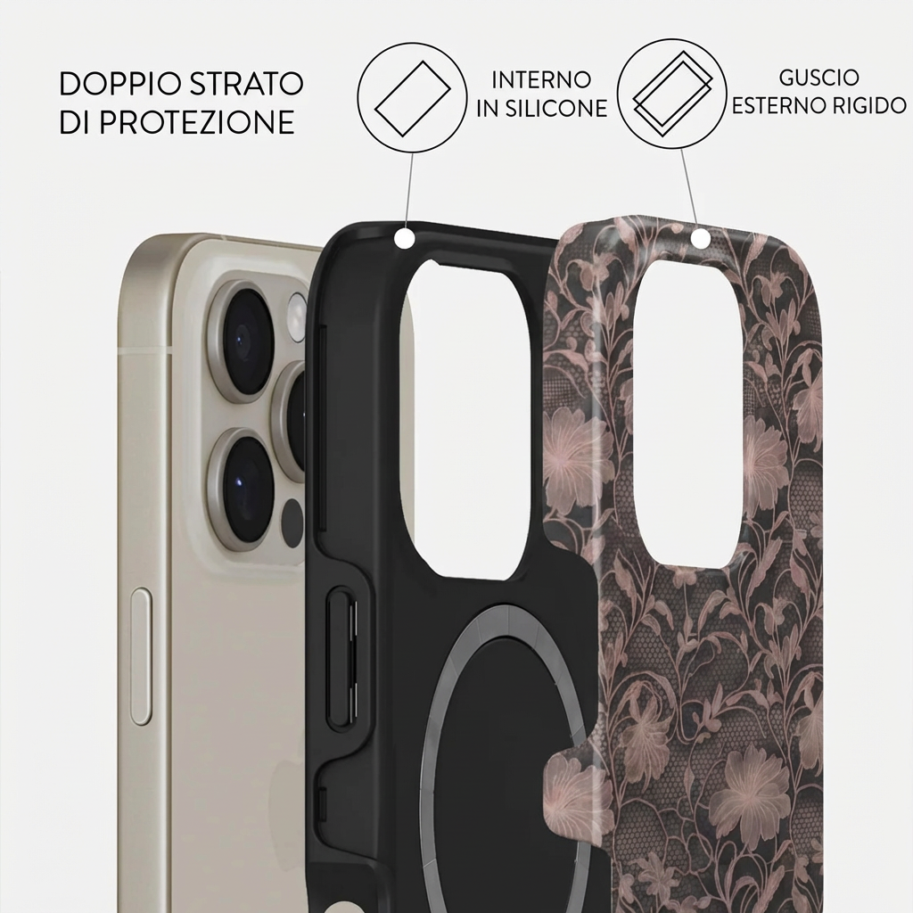 Standing out with a durable and refined cover, this MagSafe version is perfect for those looking for advanced protection without sacrificing elegance. Crafted from the highest quality materials, our Tough MagSafe cover combines a dual-layer structure that absorbs shock, with an ultra-resistant glossy finish for a shiny and sophisticated look. Compatible with the MagSafe system, you can charge your device easily and without having to remove the cover.