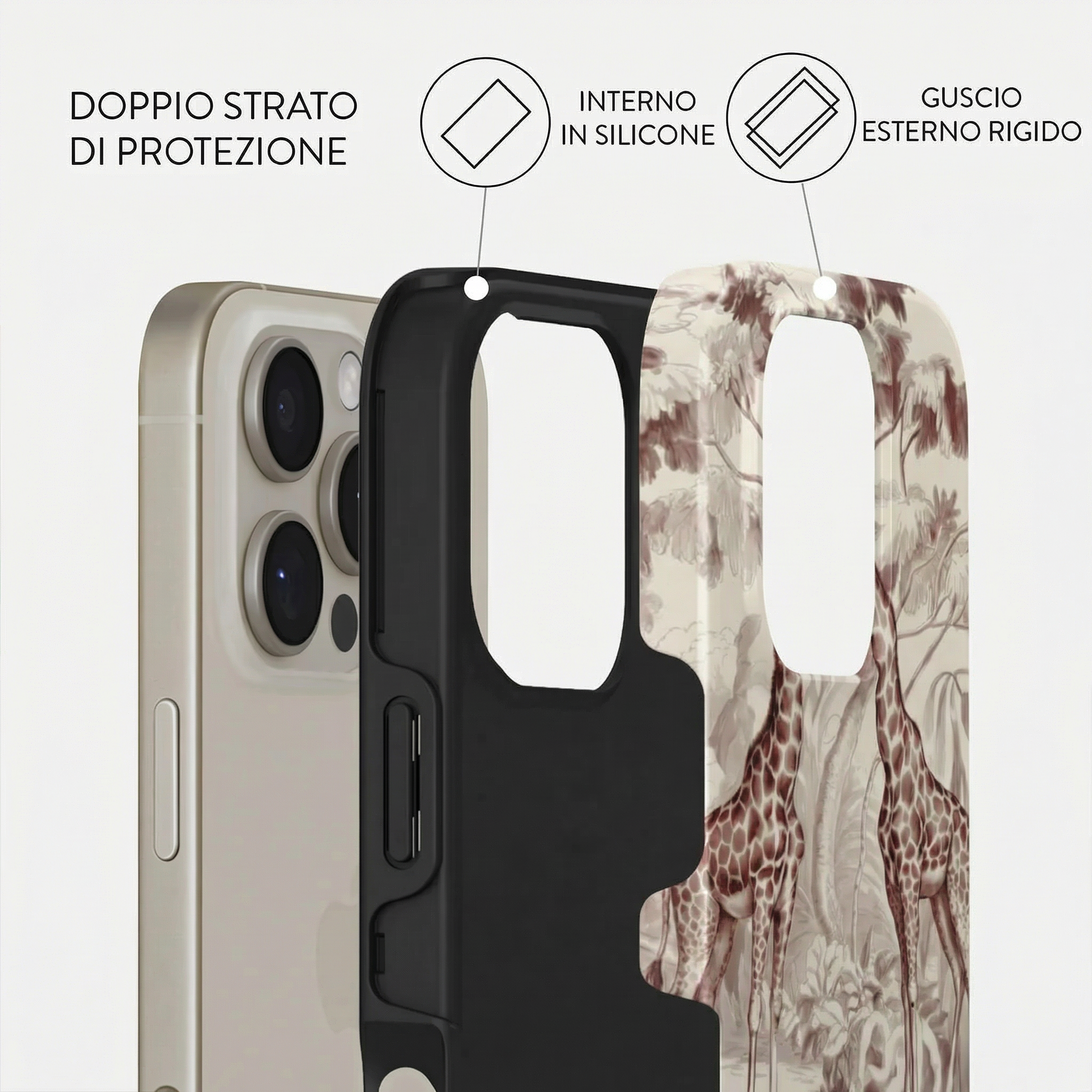 Ogni modello è composto da un doppio strato: una base in silicone antiurto che avvolge il dispositivo, unita a una scocca rigida esterna con stampa ad alta definizione.