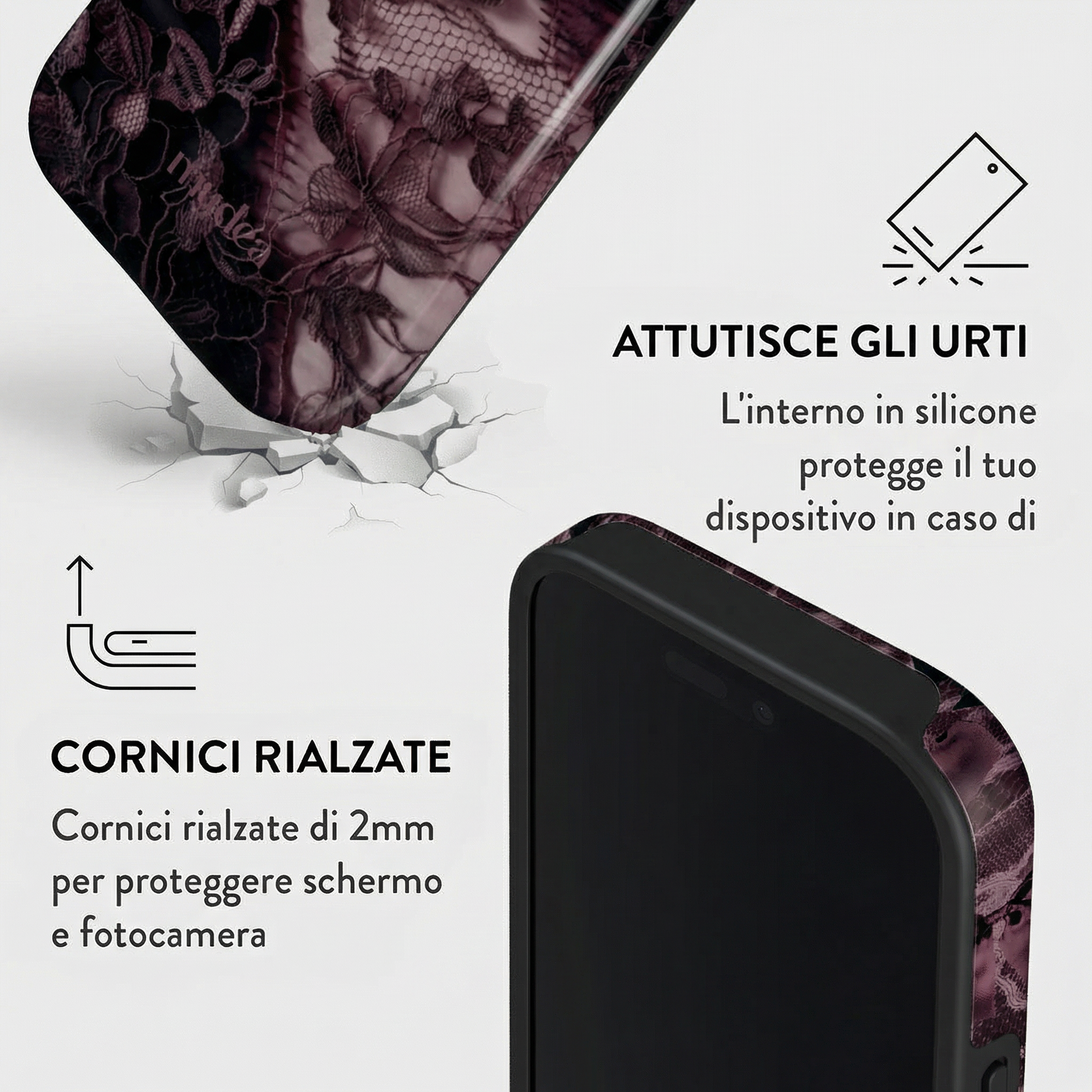 Distinguiti con una cover resistente e raffinata, perfetta per chi vuole protezione senza rinunciare all’eleganza. Realizzata con materiali di alta qualità, combina una struttura doppio strato per assorbire gli urti con una finitura glossy ultra resistente.